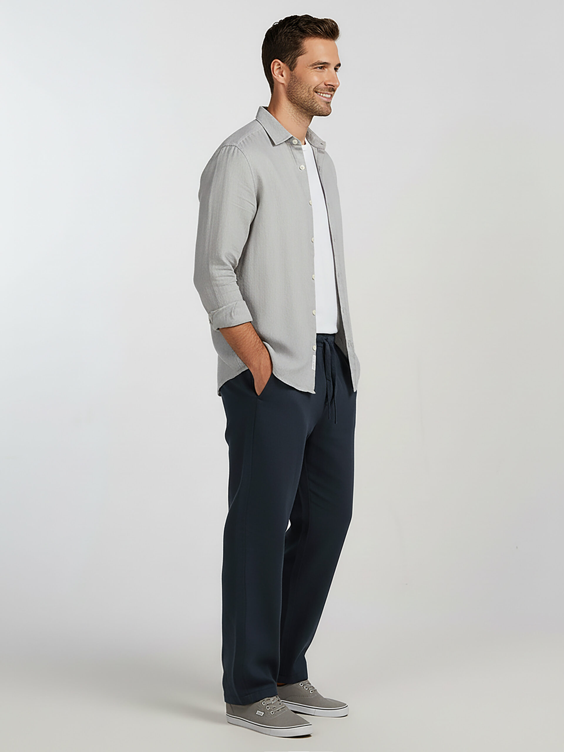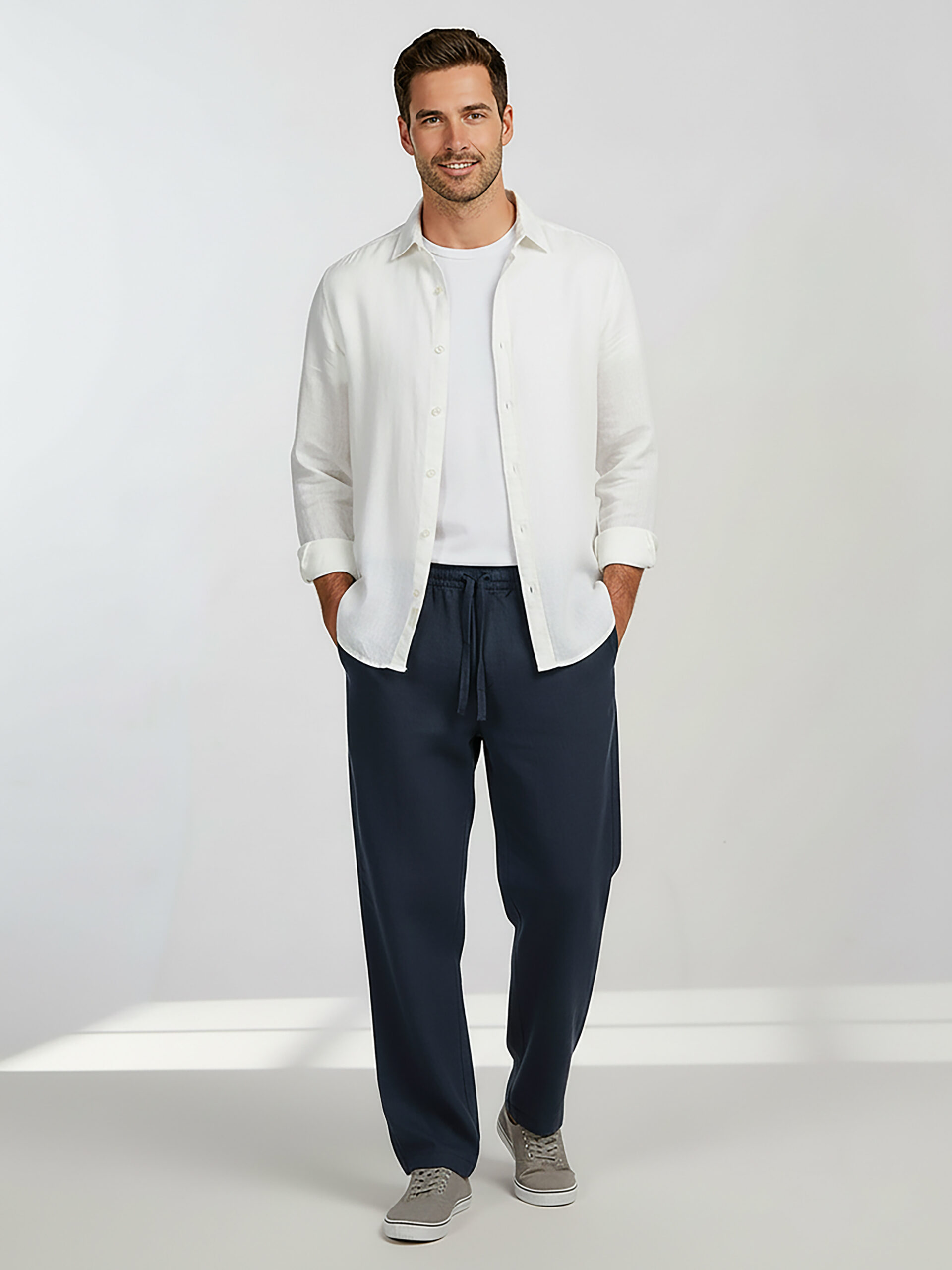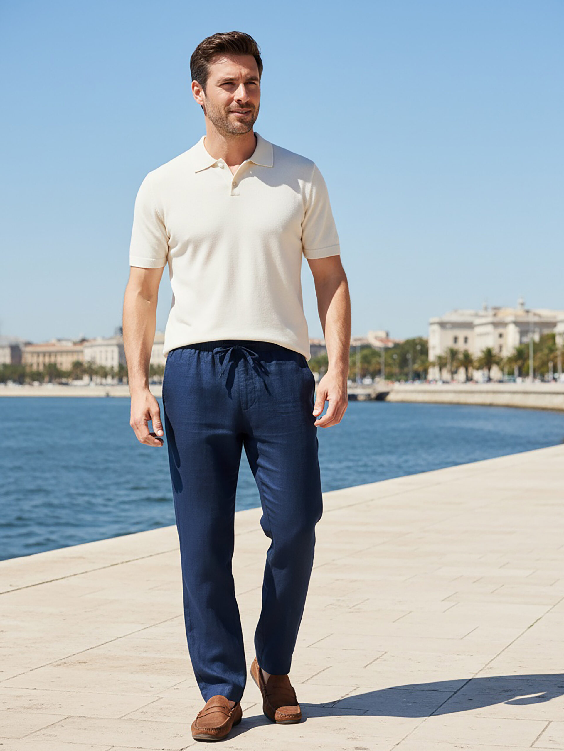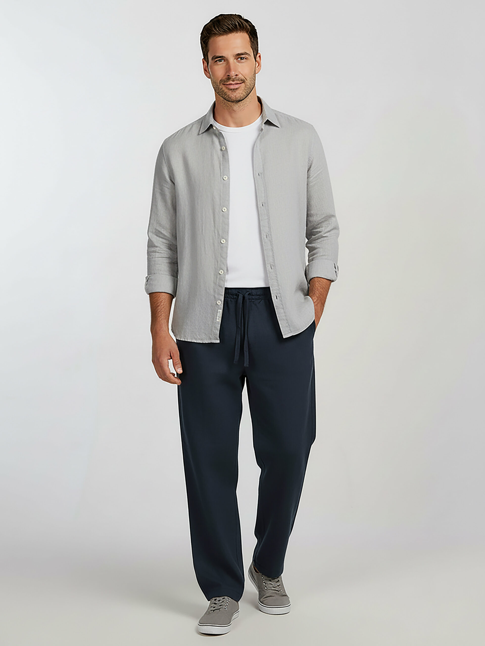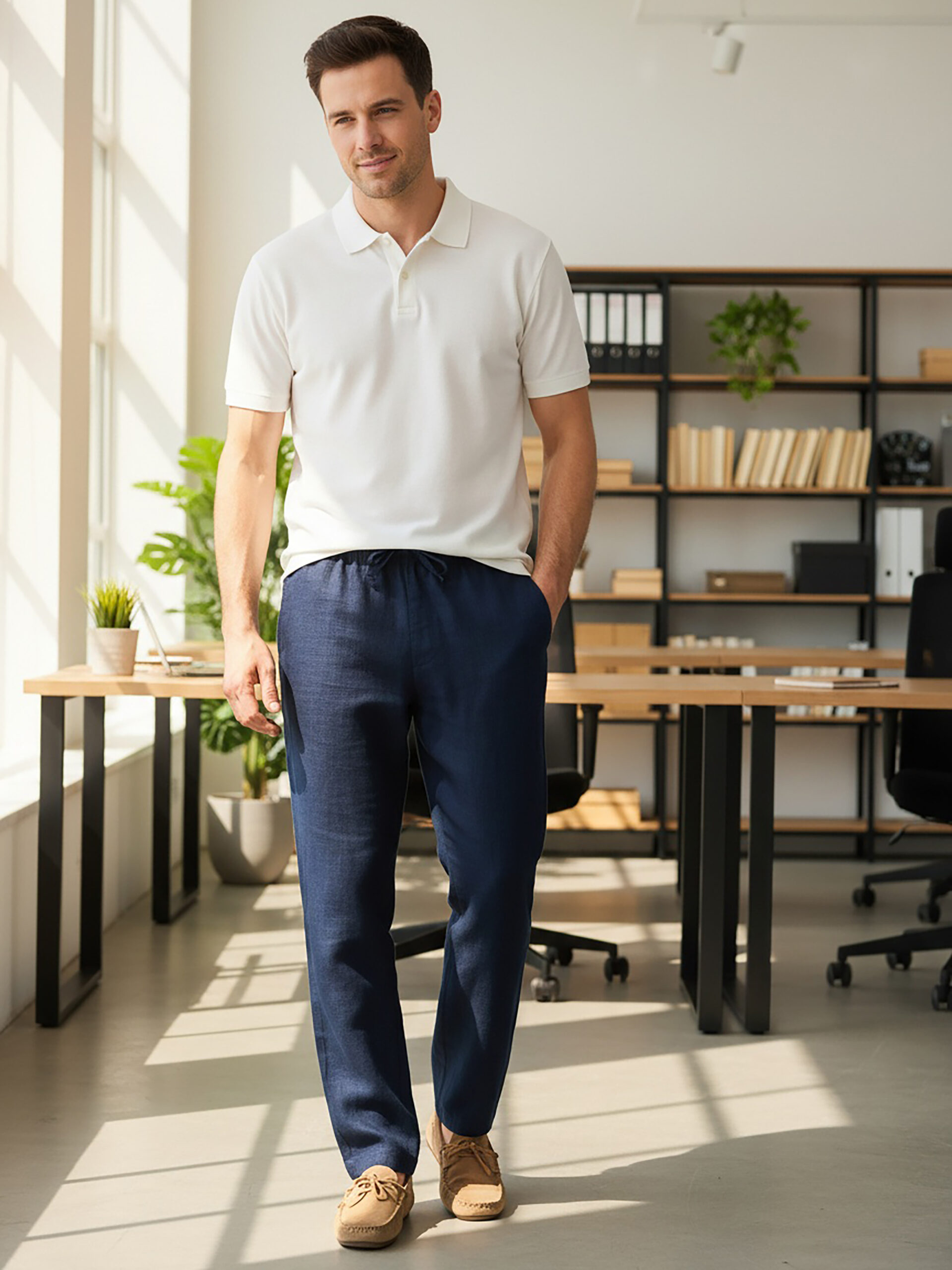 Брюки летние мужские Trango выполнены из натурального 100% льна. Льняные брюки белые свободного кроя очень удобные, имеют глубокие боковые карманы , пояс на широкой резинке и льняной поясок для завязывания. Мужские брюки лен обладают антисептическими свойствами , хорошо впитывают влагу и быстро отдают её – высыхают, в жару работают как кондиционер, снижая температуру на поверхности тела на несколько градусов, хорошо отражают солнечные лучи, задерживая ультрафиолет. Брюки летние изо льна прекрасно хранятся, хорошо переносят температурные перепады и самые жесткие стирки. Штаны мужские изо льна станут вашей любимой вещью и прослужат долго.