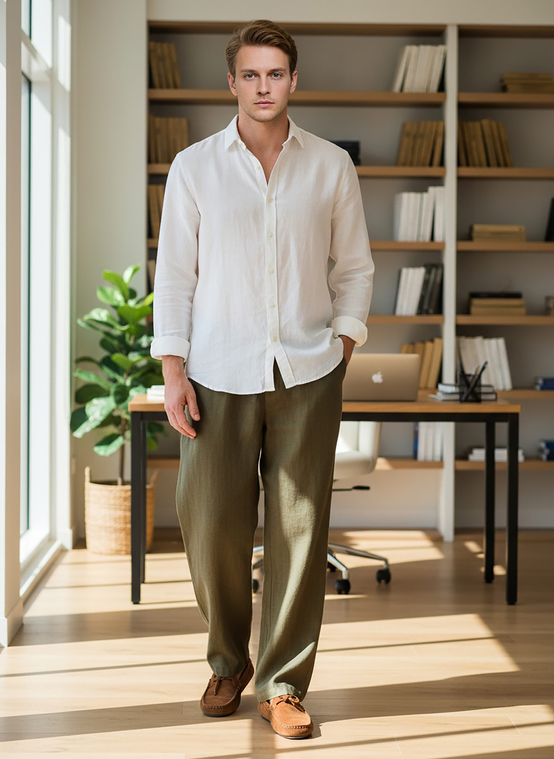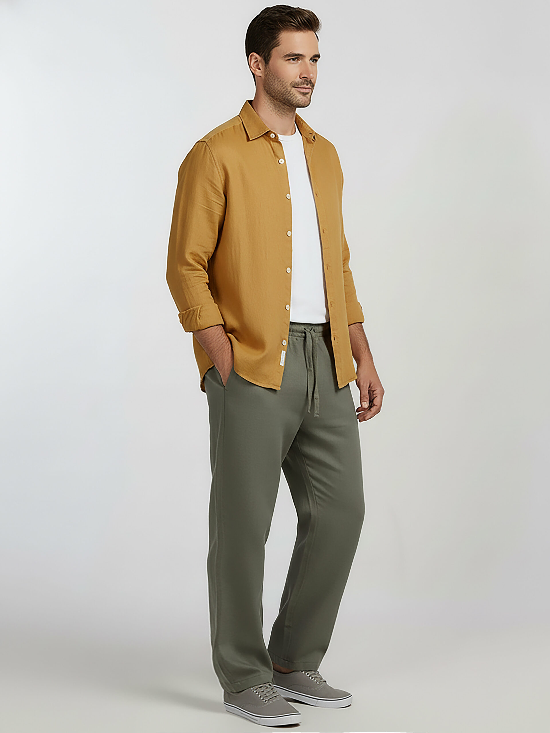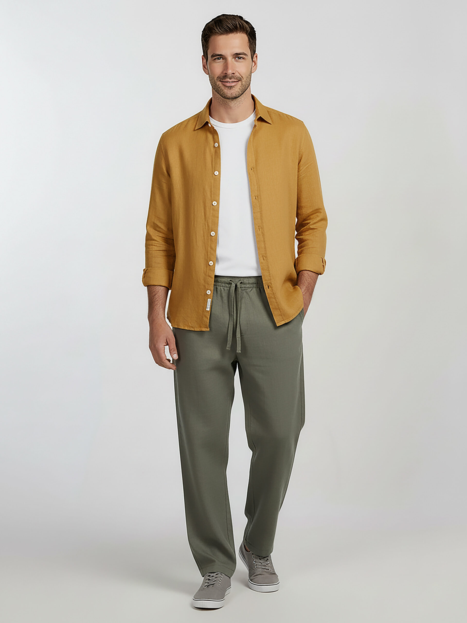 Брюки летние мужские Trango выполнены из натурального 100% льна. Льняные брюки белые свободного кроя очень удобные, имеют глубокие боковые карманы , пояс на широкой резинке и льняной поясок для завязывания. Мужские брюки лен обладают антисептическими свойствами , хорошо впитывают влагу и быстро отдают её – высыхают, в жару работают как кондиционер, снижая температуру на поверхности тела на несколько градусов, хорошо отражают солнечные лучи, задерживая ультрафиолет. Брюки летние изо льна прекрасно хранятся, хорошо переносят температурные перепады и самые жесткие стирки. Штаны мужские изо льна станут вашей любимой вещью и прослужат долго.