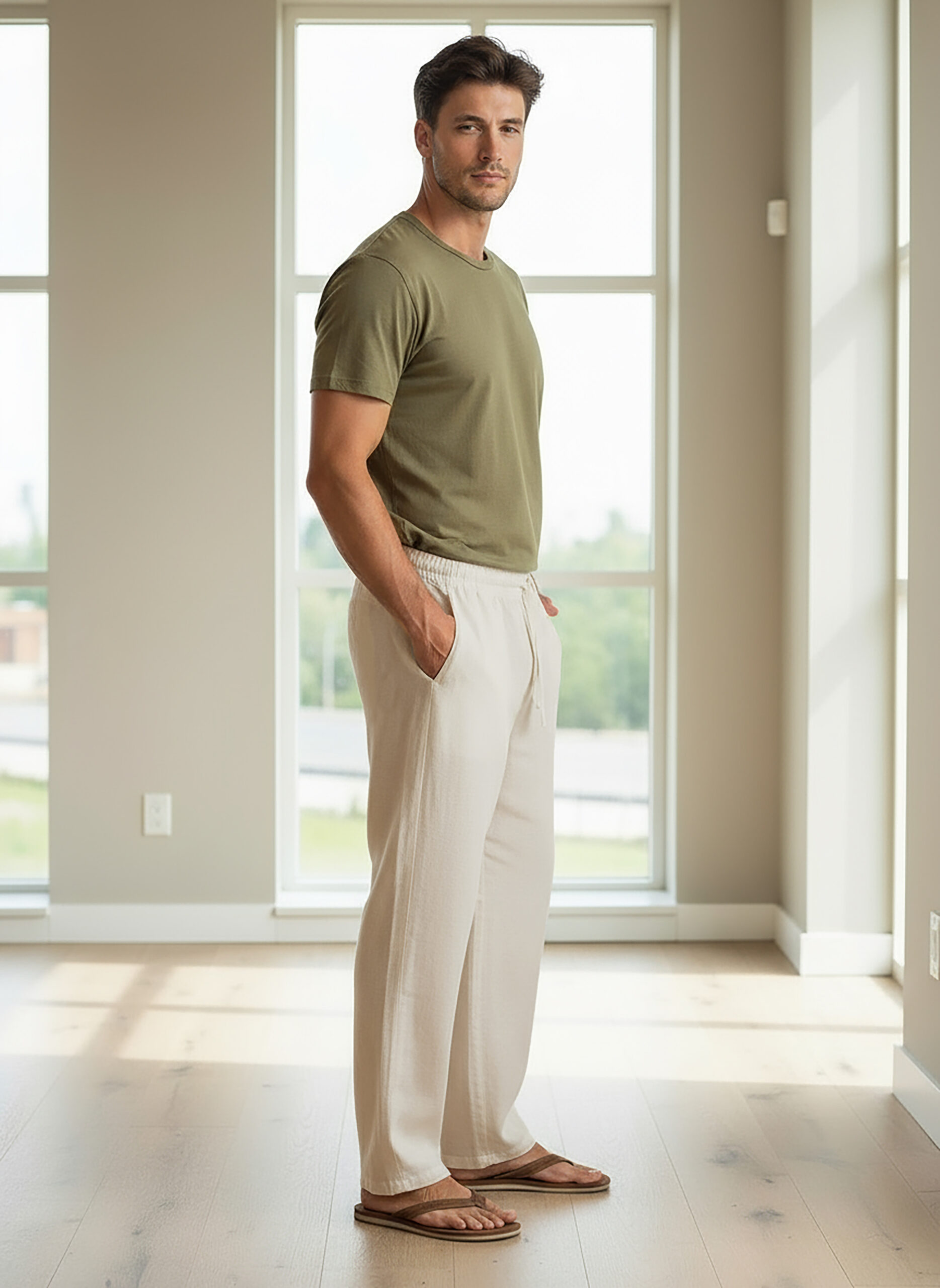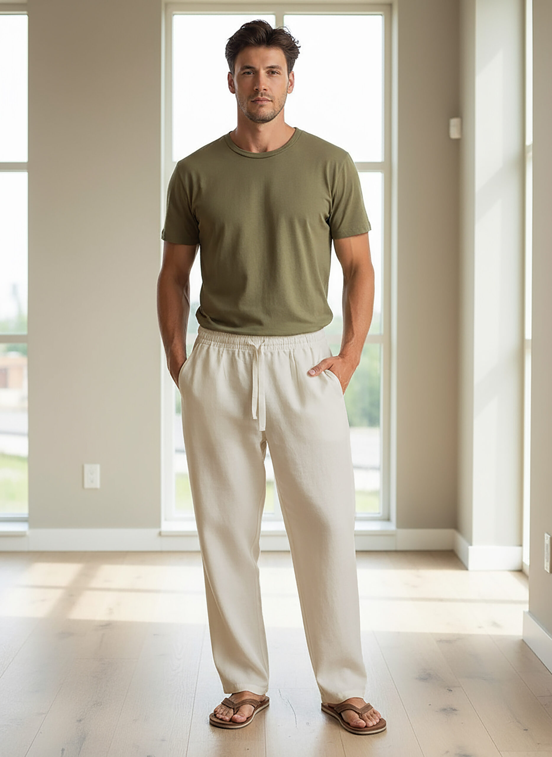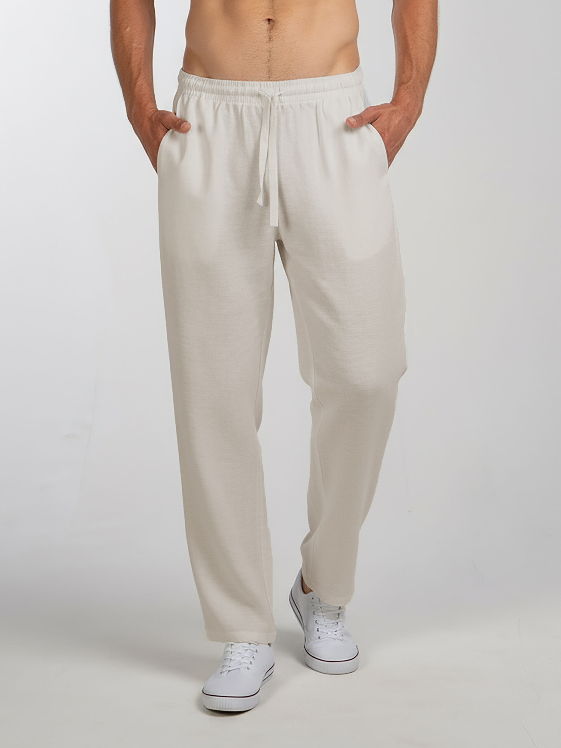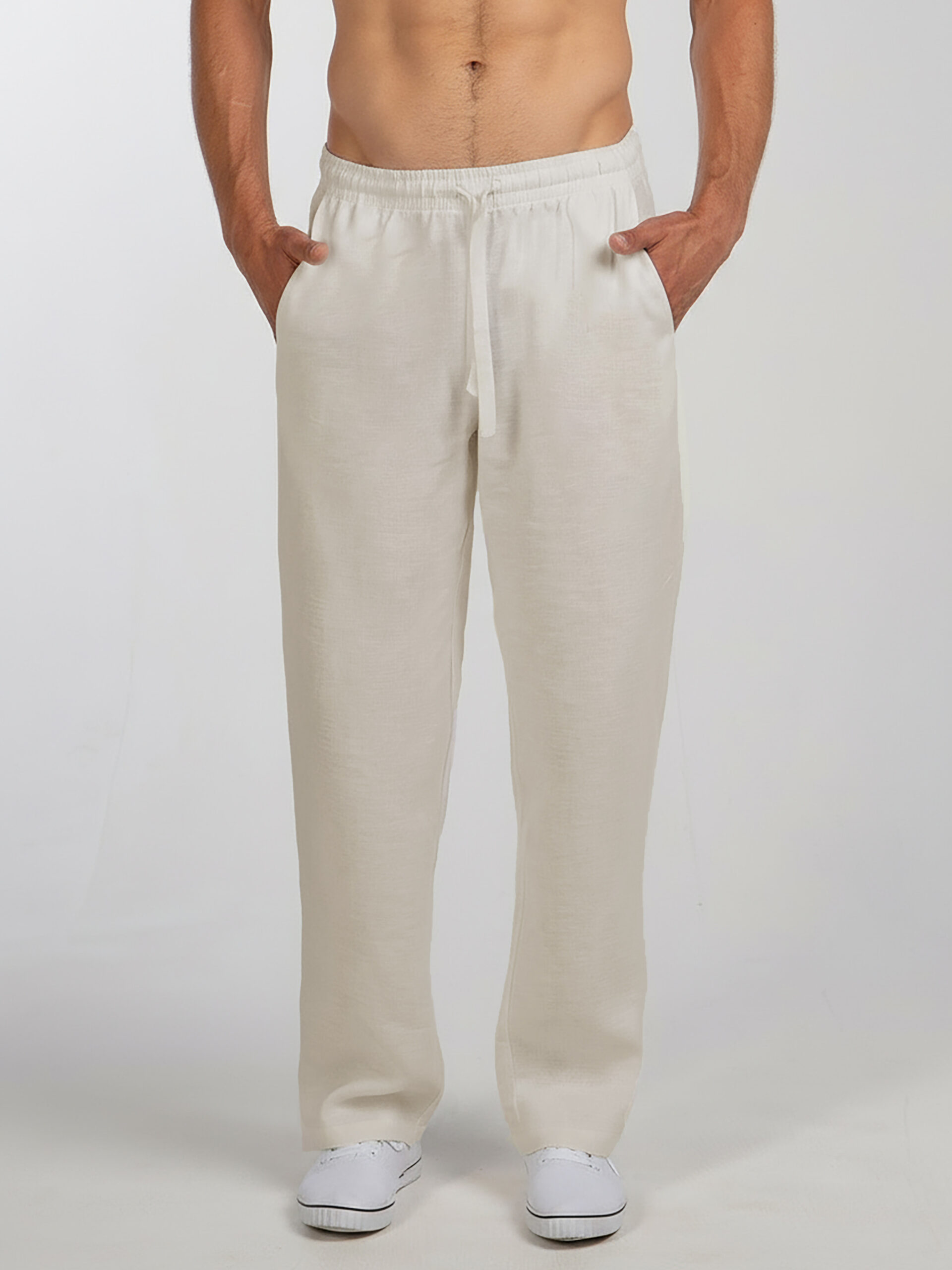 Брюки летние мужские Trango выполнены из натурального 100% льна. Льняные брюки белые свободного кроя очень удобные, имеют глубокие боковые карманы , пояс на широкой резинке и льняной поясок для завязывания. Мужские брюки лен обладают антисептическими свойствами , хорошо впитывают влагу и быстро отдают её – высыхают, в жару работают как кондиционер, снижая температуру на поверхности тела на несколько градусов, хорошо отражают солнечные лучи, задерживая ультрафиолет. Брюки летние изо льна прекрасно хранятся, хорошо переносят температурные перепады и самые жесткие стирки. Штаны мужские изо льна станут вашей любимой вещью и прослужат долго.