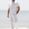 Брюки мужские лен выполнены из натурального 100% льна. Льняные штаны свободного кроя зауженные к низу – ключ к стилю и комфорту. Брюки мужские свободные имеют глубокие удобные боковые карманы , пояс на широкой резинке и льняной поясок для завязывания. Брюки лен мужские широкие обладают антисептическими свойствами , хорошо впитывают влагу и быстро отдают её – высыхают, в жару работают как кондиционер, снижая температуру на поверхности тела на несколько градусов, хорошо отражают солнечные лучи, задерживая ультрафиолет. Брюки мужские льняные на резинке прекрасно хранятся, хорошо переносят температурные перепады и самые жесткие стирки. Штаны мужские изо льна станут вашей любимой вещью и прослужат долго. Для удобства наших покупателей мы подготовили размерную сетку, она находится вместе с фотографиями изделия (листайте фото и увидите). Широкий размерный ряд (от маленьких до больших размеров) позволяет подобрать пляжные брюки для мужчин разного типа телосложения.