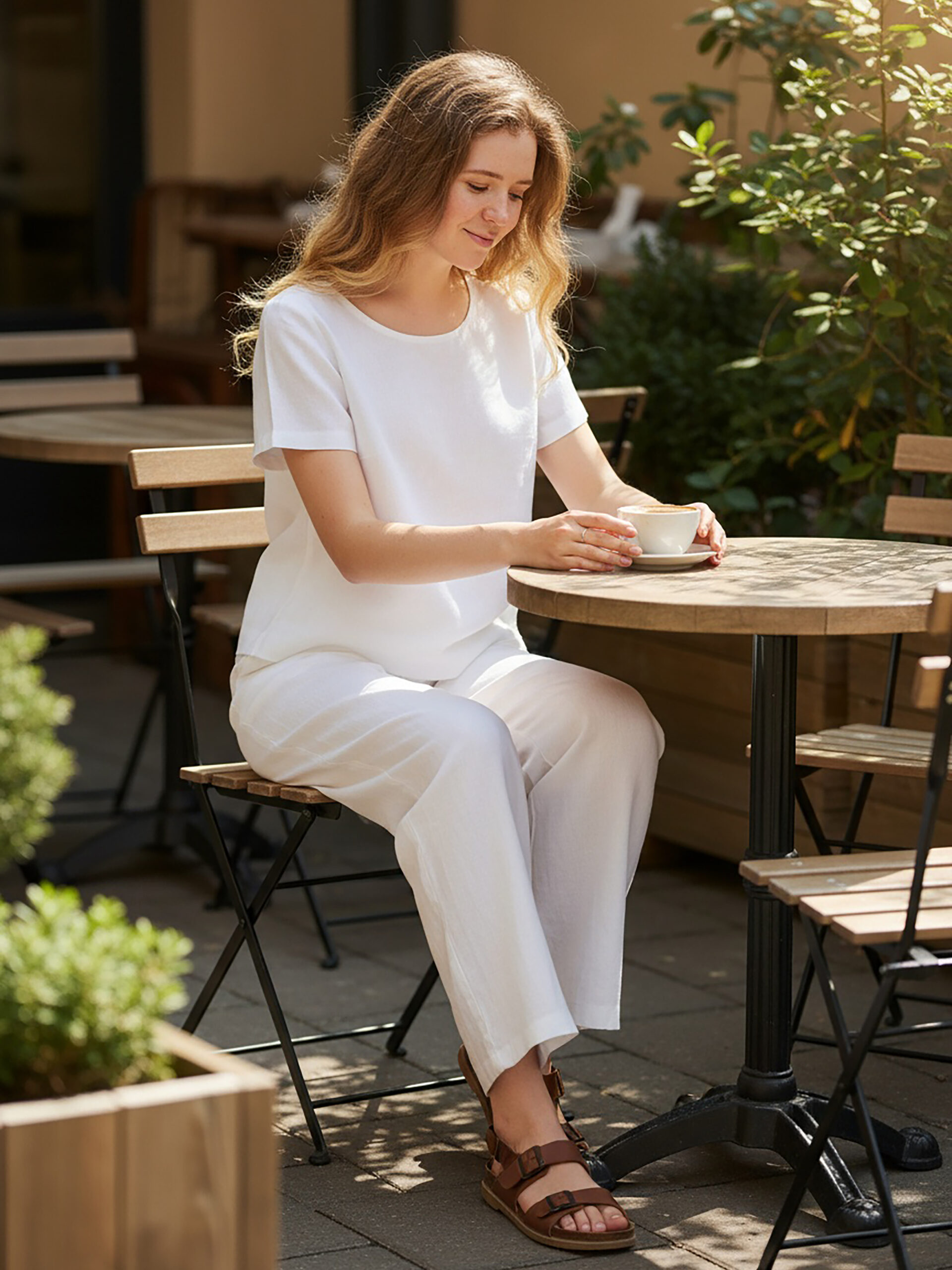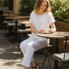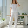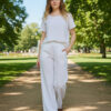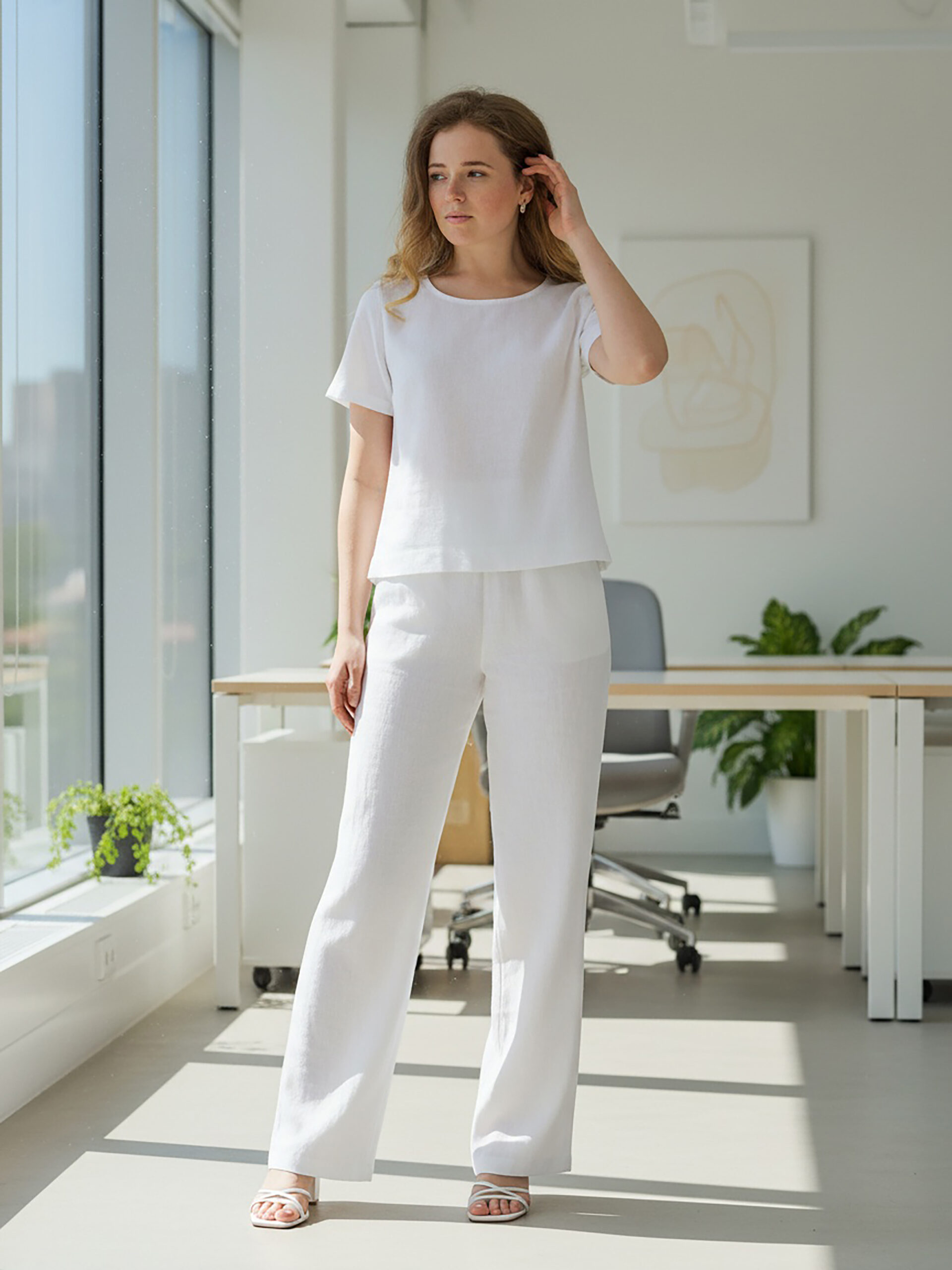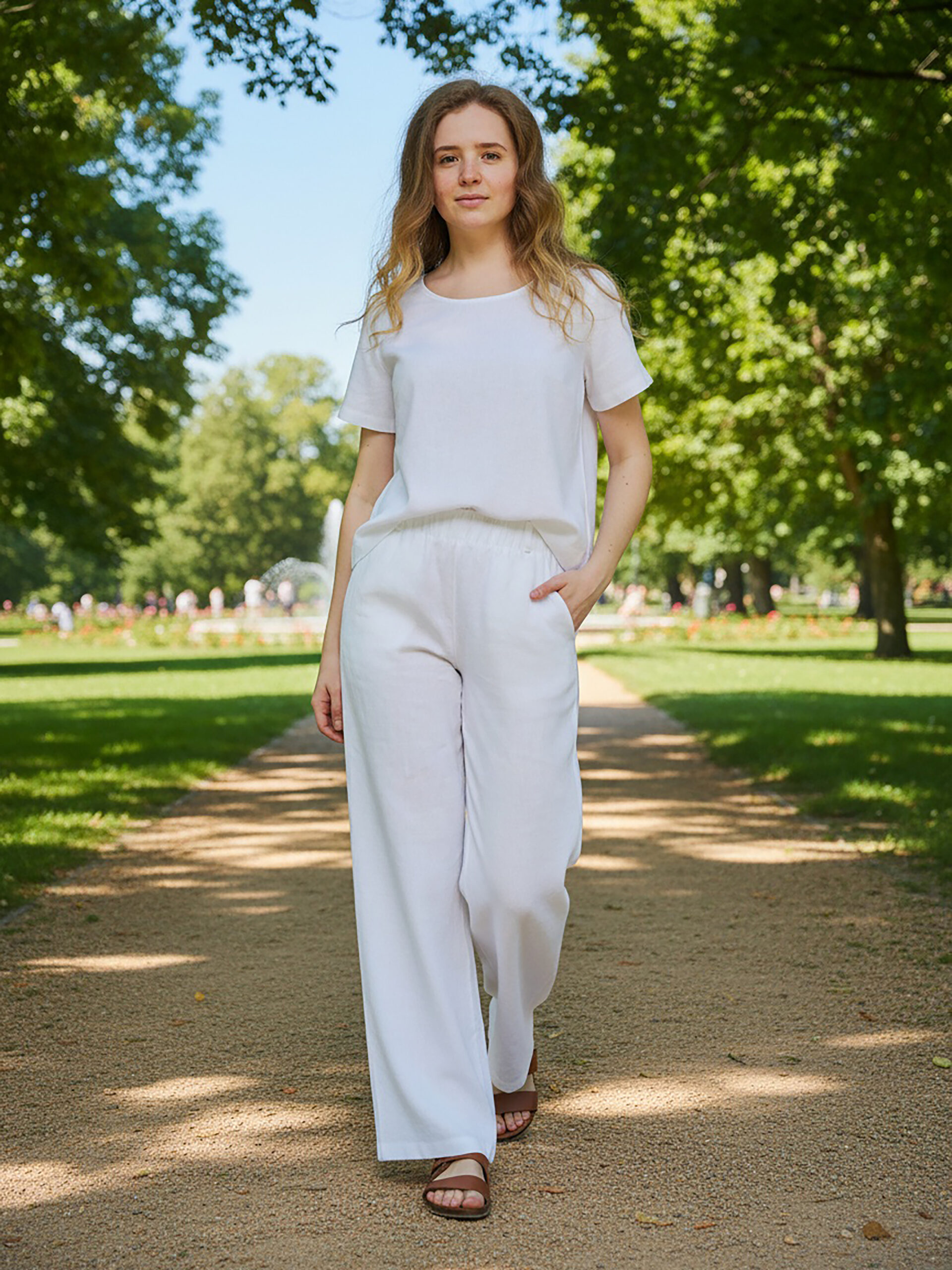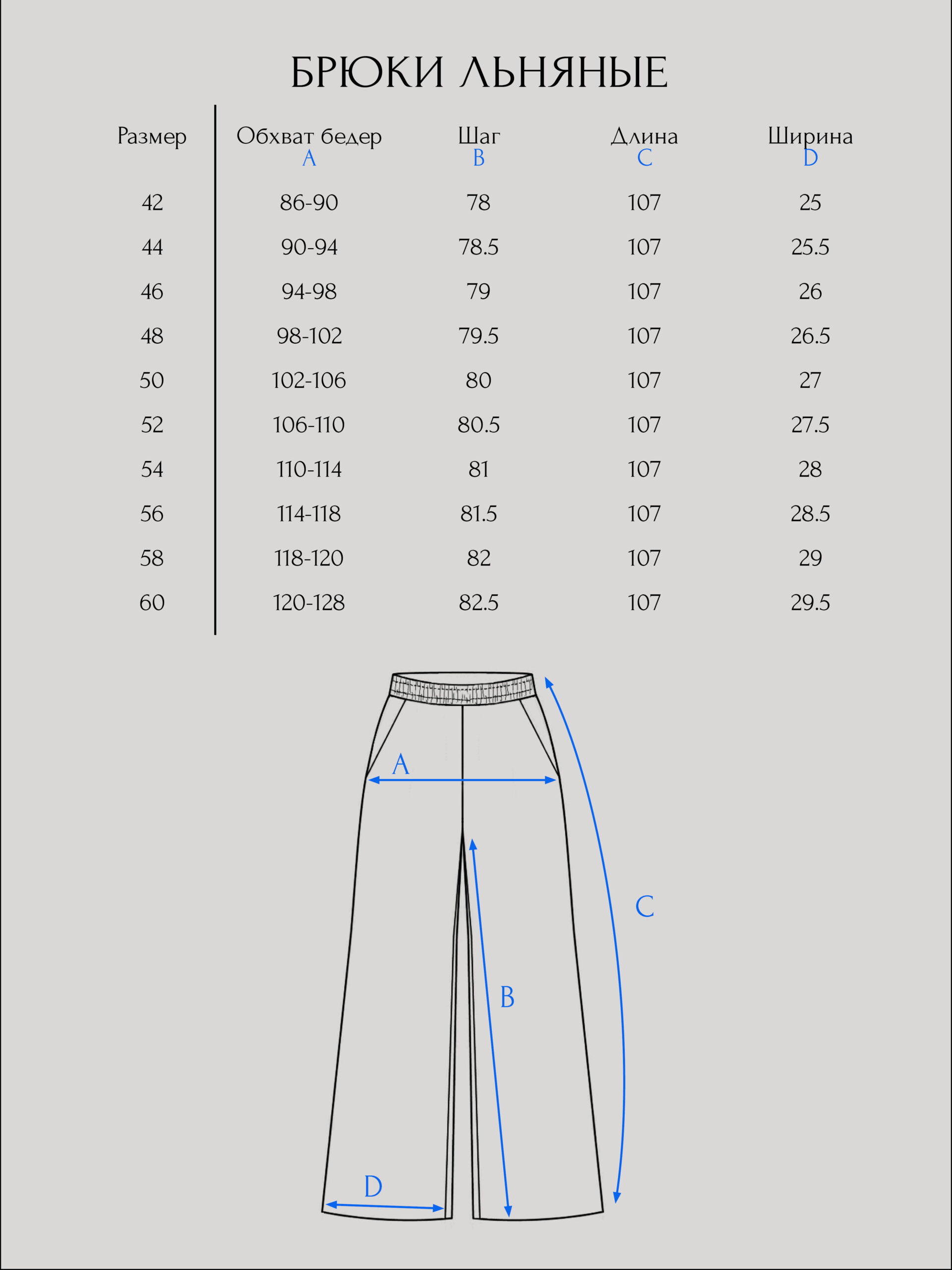 Брюки женские палаццо из натурального умягченного 100% льна высочайшего качества. Они представляют собой идеальное сочетание комфорта и стиля. Брюки клеш широкие от бедра. Это создает впечатление легкости и элегантности, придавая силуэту женственность и грацию. Штаны на резинке имеют свободный крой, что обеспечивает свободу движений и чувство комфорта. Льняные широкие палаццо также отличаются своей универсальностью и способностью сочетаться с различными верхней одеждой и аксессуарами. Льняные ткани в наших изделиях проходят специальную обработку – аэромягчение, которая не только делает структуру ткани мягче, но эффективно защищает изделия от усадки. Хотим обратить внимание, для сохранения ценных свойств натурального льна, ткань подвергается минимальной обработке и не содержит синтетических включений. Поэтому на изделии могут встречаться “шишечеки”- выпуклые крошечные узелки, утолщения нитей, просновки, они доказывают природное происхождение волокна. Советуем принять данное свойство льна, в этом отличие и особая эстетика полотна. Она поможет вам выбрать подходящий вариант как для стройных девушек, так и для обладательниц пышных форм размера плюс сайз. Эти брюки – воплощение универсальности, комфорта и актуальных трендов, которые подчеркнут вашу индивидуальность и сделают вас неотразимой.