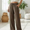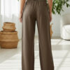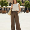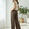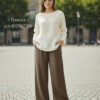 Эти брюки прямого, широкого кроя, напоминающие модные палаццо, визуально вытягивают силуэт и придают образу легкость. Практичные косые карманы по бокам и удобные накладные карманы сзади делают их функциональными. Мы позаботились и о вашем удобстве в плане длины: внизу оставлен достаточный запас, чтобы вы могли легко укоротить брюки до желаемой длины.