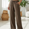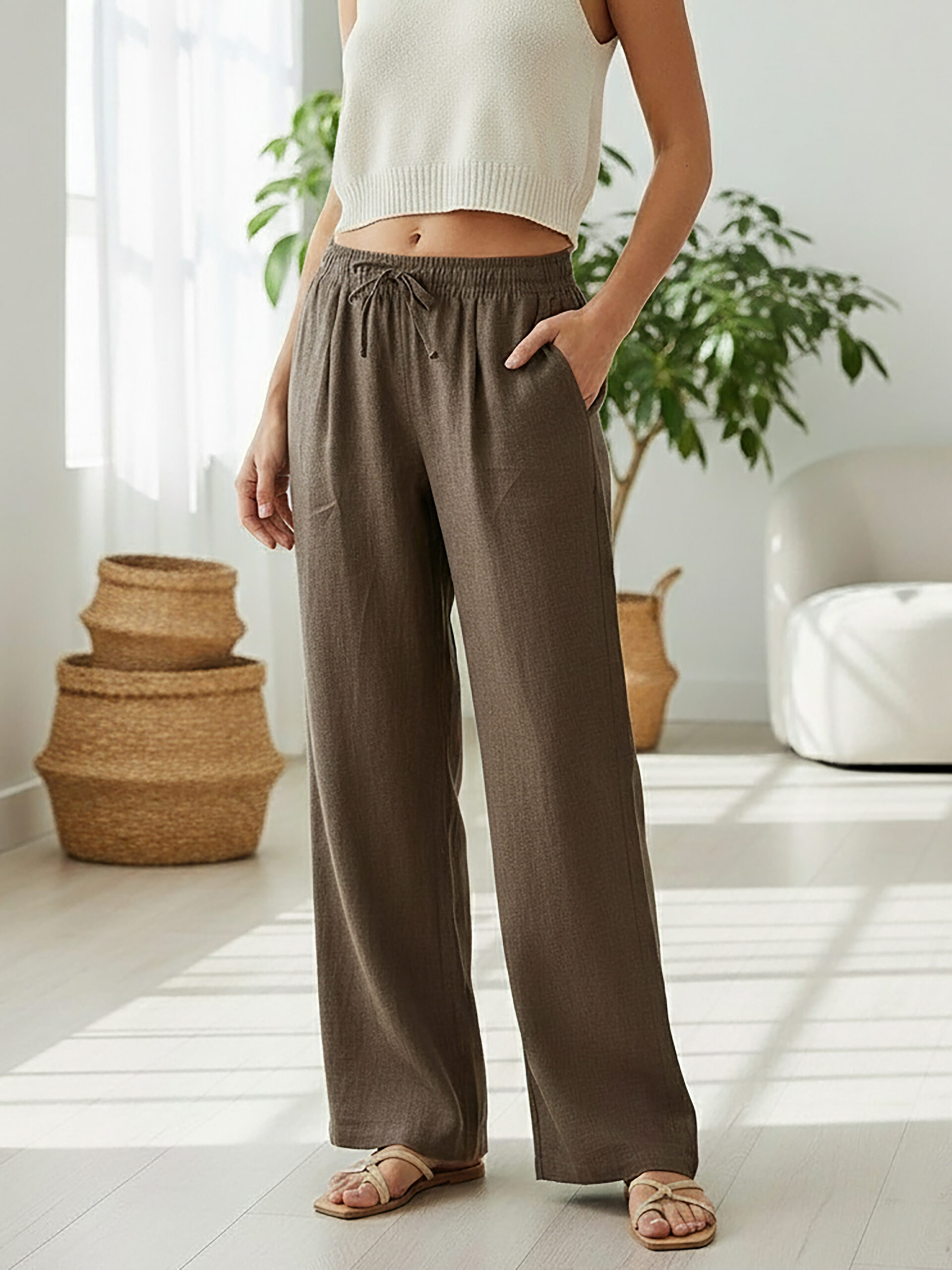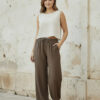 Представляем вам идеальные летние брюки, которые станут основой вашего гардероба! Созданные из 100% натурального белорусского льна с эффектом крэш, они дарят ощущение невесомости и прохлады даже в самый знойный день. Высокая посадка на комфортной резинке и стильные завязки позволяют идеально отрегулировать их по талии, а мягкие складки на поясе добавляют элегантности.