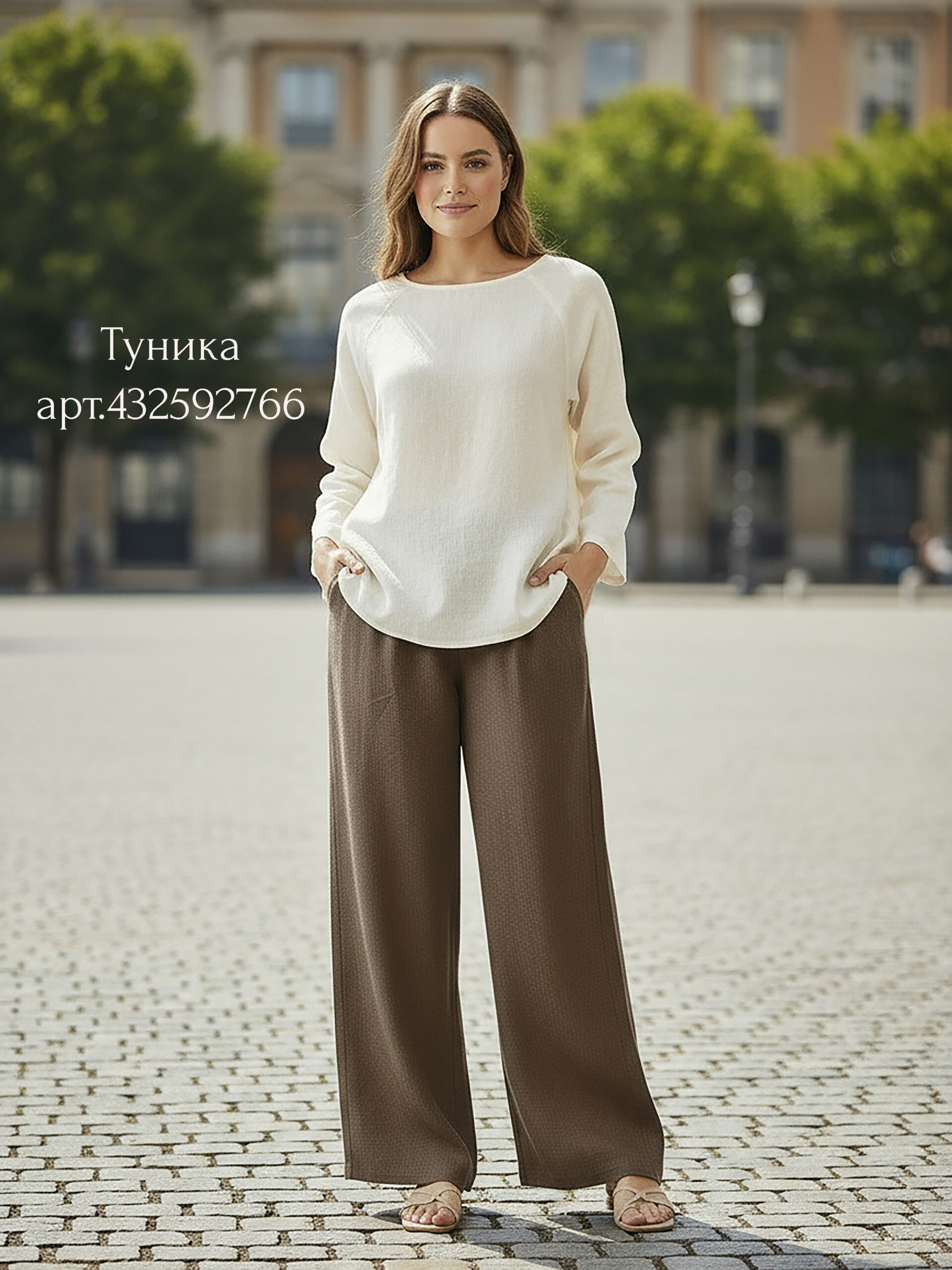 Натуральный лен – это дышащая, гипоаллергенная ткань, которая бережно относится к вашей коже, впитывает влагу и дарит ощущение свежести. Свободный крой дарит уверенность и комфорт в движении.
