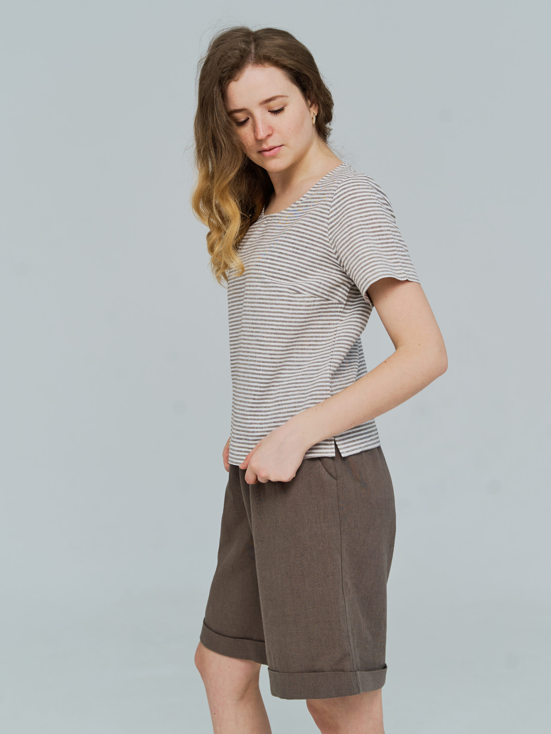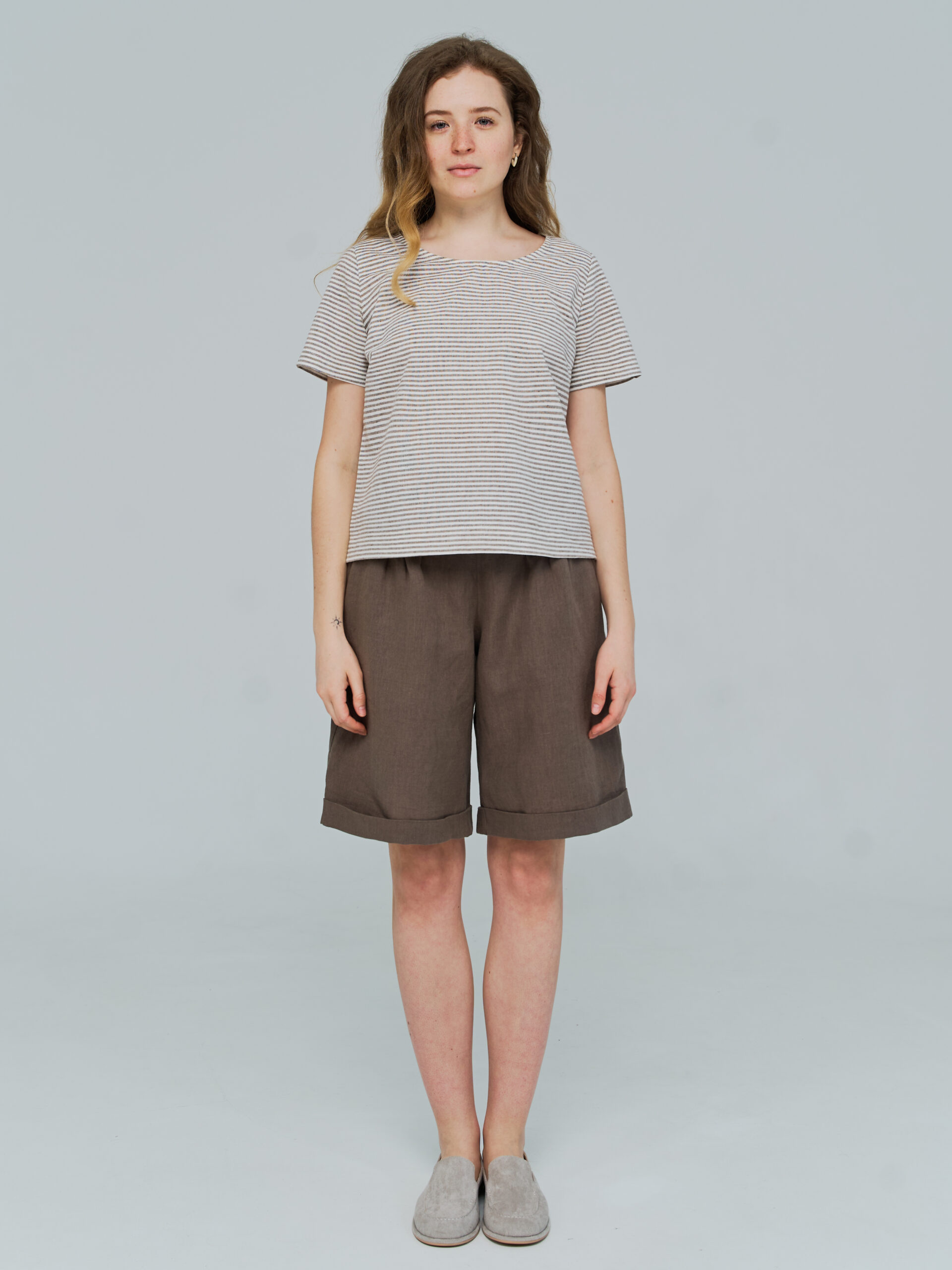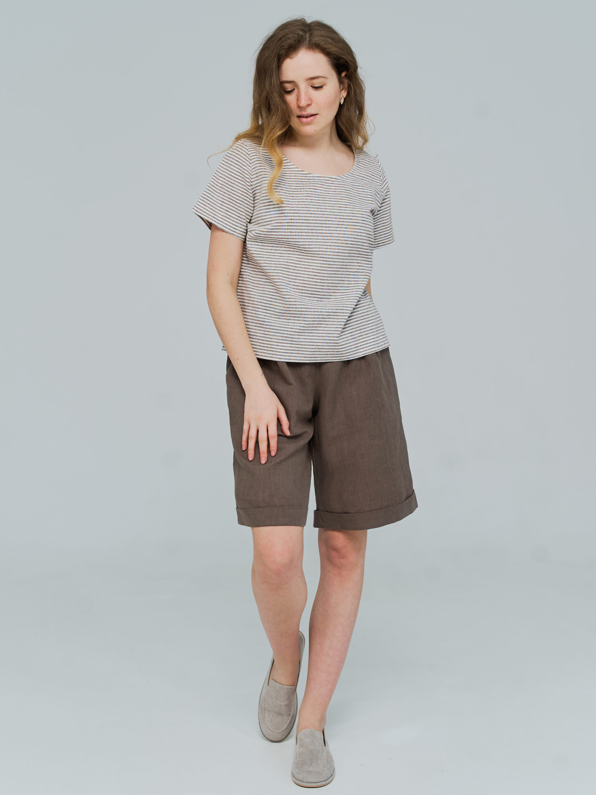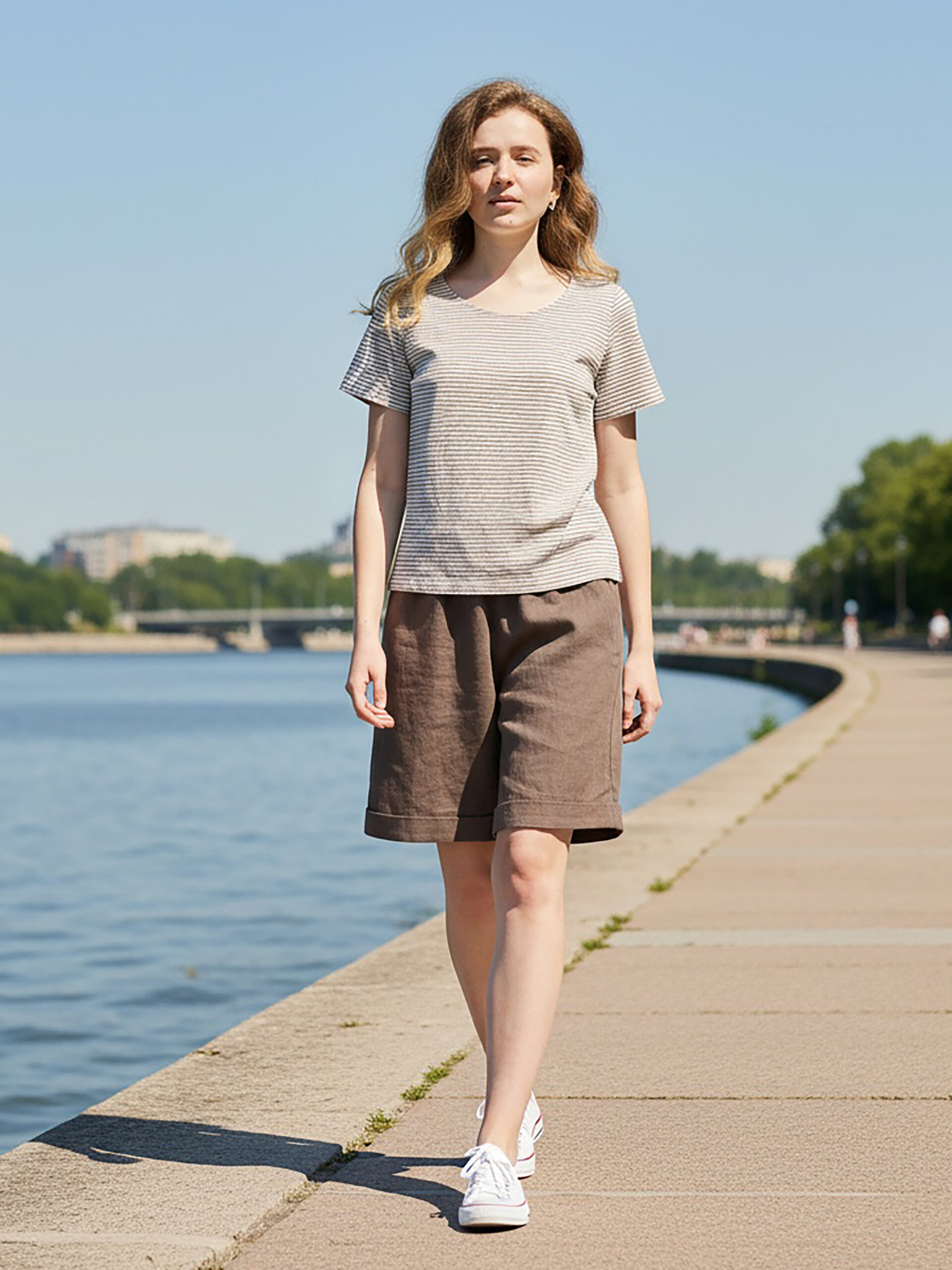 Льняные шорты -отличный выбор для теплого времени года. Этот стильный элемент гардероба сочетает комфорт и модные тенденции, подчеркивая красоту девушек и женщин. Бермуды выполнены из натурального льна, что обеспечивает приятное ощущение прохлады в жаркую погоду. Шорты с высокой талией идеально подходят для создания летнего образа как для пляжа, так и для прогулок у моря.Свободные бермуды обеспечивают свободу движений и создают эффектный силуэт. Шорты-бермуды – классический базовый вариант гардероба девушек и женщин старшего возраста. Стильные бермуды подходят женщинам разных возрастов благодаря своей универсальности. Плотная структура материала гарантирует долговечность изделия даже при частом ношении. Благодаря классическому дизайну такие шортики гармонично впишутся в любой гардероб, добавляя нотку летней моды к любому стилю. Широкий крой позволяет чувствовать себя комфортно даже в самые теплые дни лета, а материал из натурального льна поддерживает естественную вентиляцию кожи. Это практичный вариант одежды для девушек, которые ценят удобство без ущерба для внешнего вида. Такие свободные бермуды станут вашим любимым выбором не только для отпуска или путешествий к морю, но также и для домашних условий.