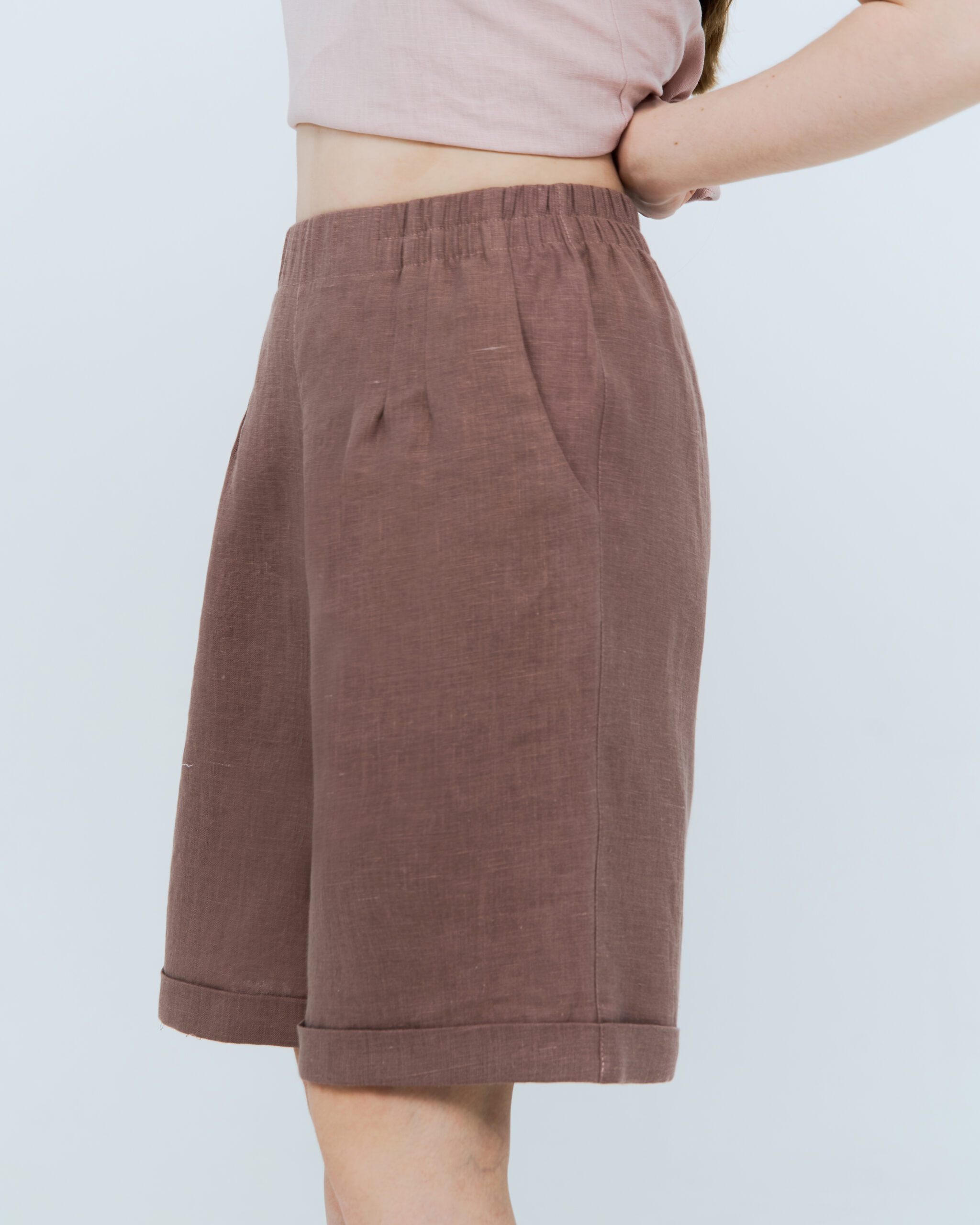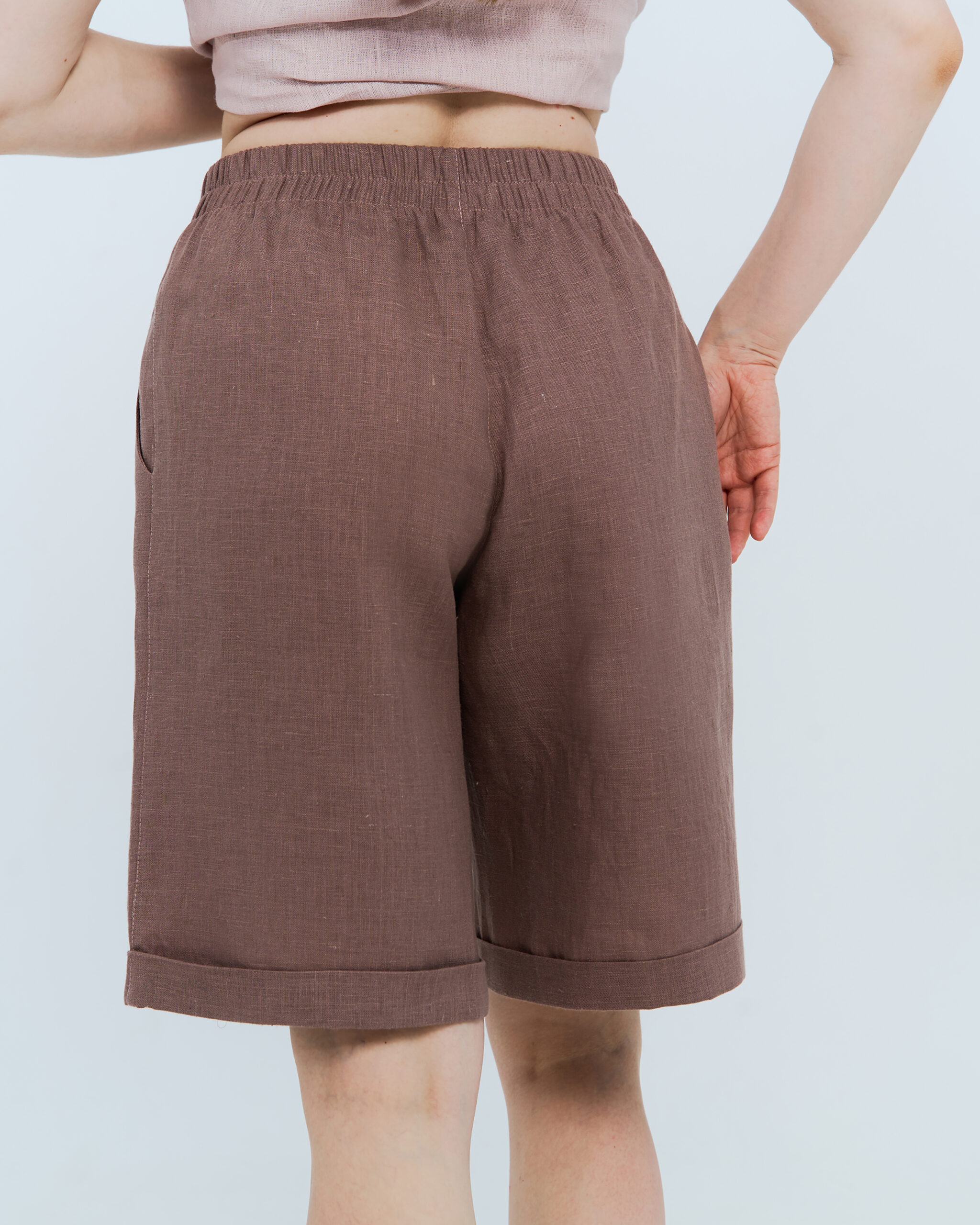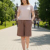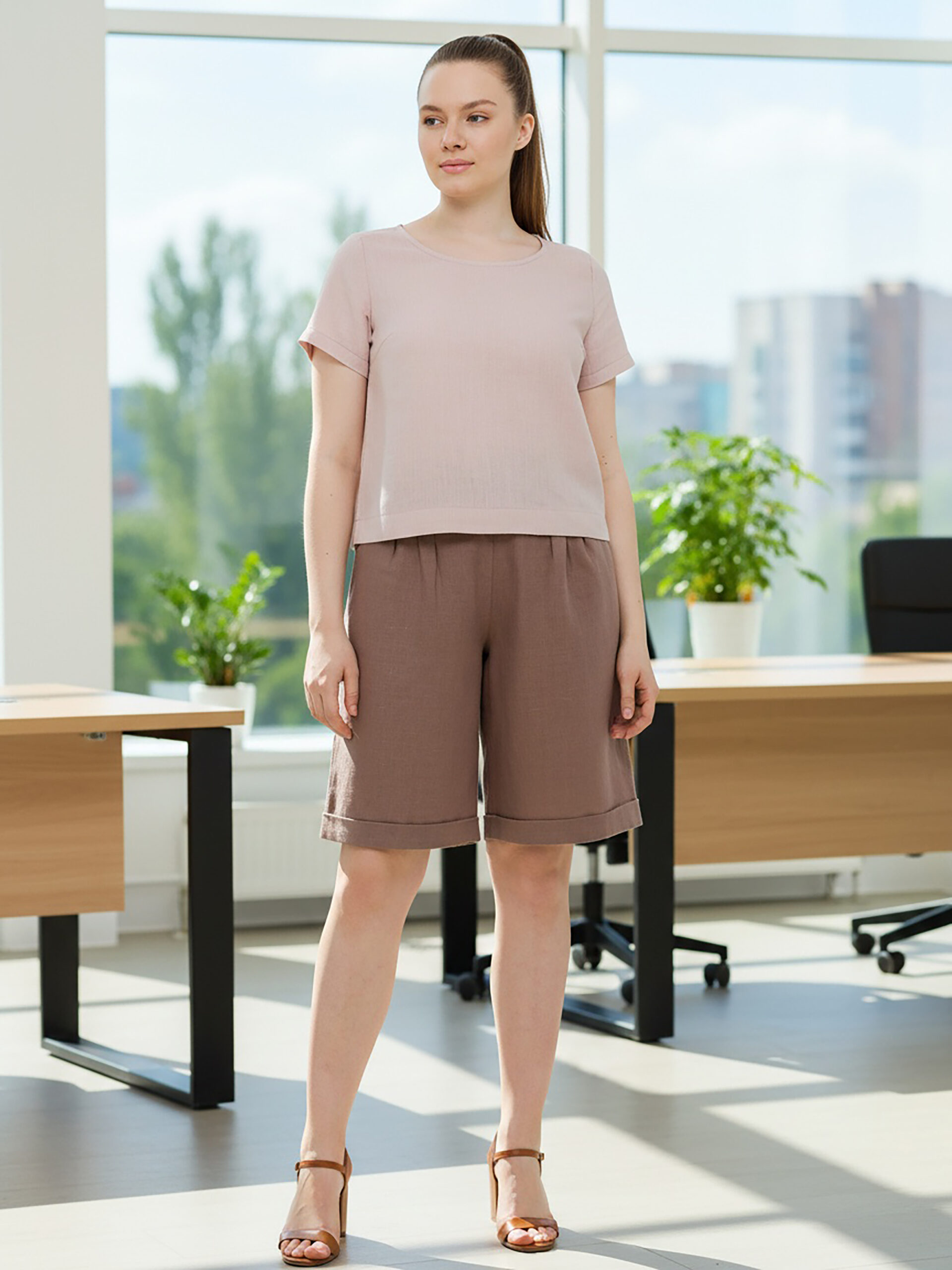 Льняные шорты -отличный выбор для теплого времени года. Этот стильный элемент гардероба сочетает комфорт и модные тенденции, подчеркивая красоту девушек и женщин. Бермуды выполнены из натурального льна, что обеспечивает приятное ощущение прохлады в жаркую погоду. Шорты с высокой талией идеально подходят для создания летнего образа как для пляжа, так и для прогулок у моря.Свободные бермуды обеспечивают свободу движений и создают эффектный силуэт. Шорты-бермуды – классический базовый вариант гардероба девушек и женщин старшего возраста. Стильные бермуды подходят женщинам разных возрастов благодаря своей универсальности. Плотная структура материала гарантирует долговечность изделия даже при частом ношении. Благодаря классическому дизайну такие шортики гармонично впишутся в любой гардероб, добавляя нотку летней моды к любому стилю. Широкий крой позволяет чувствовать себя комфортно даже в самые теплые дни лета, а материал из натурального льна поддерживает естественную вентиляцию кожи. Это практичный вариант одежды для девушек, которые ценят удобство без ущерба для внешнего вида. Такие свободные бермуды станут вашим любимым выбором не только для отпуска или путешествий к морю, но также и для домашних условий.